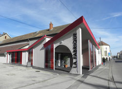 La réalisation d’un auvent protégé par des panneaux en polycarbonate colorés permettant d’allier mise en lumière et «relooking» du bâtiment existant.
